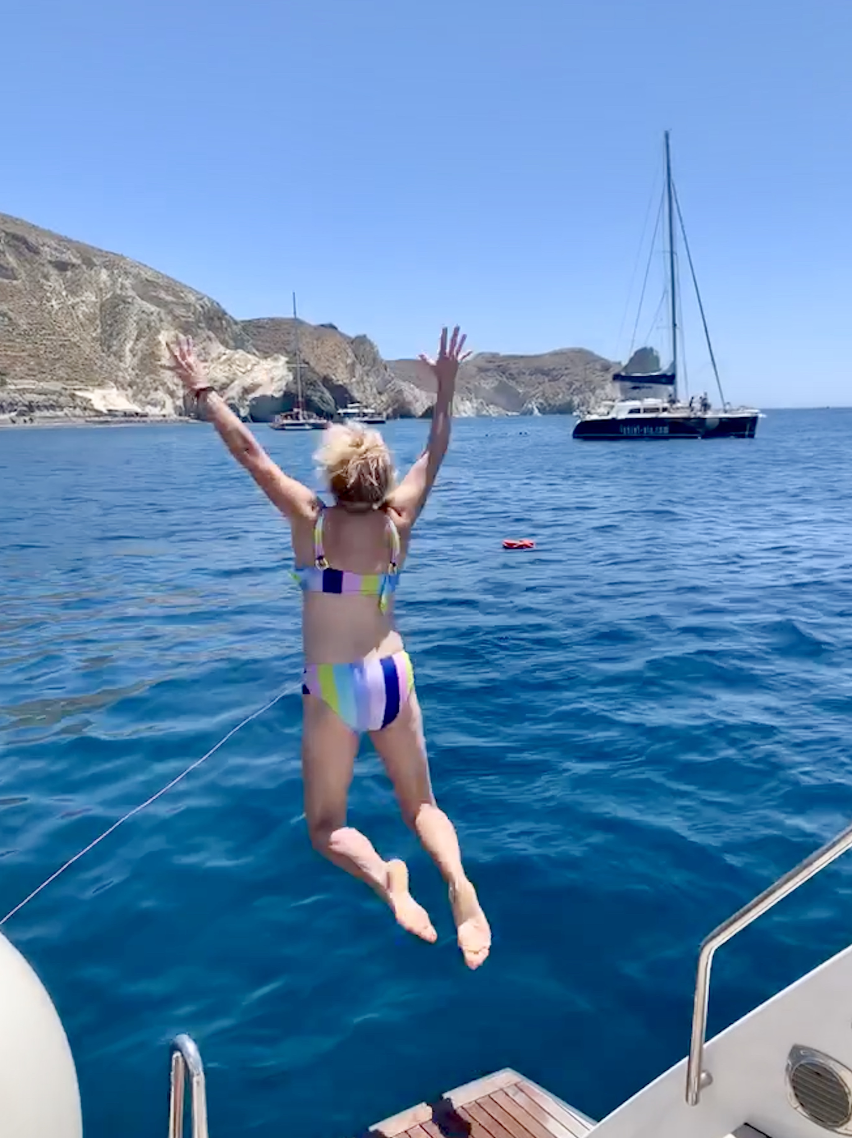 Simply put, jump into whatever you’re doing today! So taking the trash cans to the road is a Sunday chore , yeah. But breathing in the clear sunny skies that are present all day as you roll the cans to the road should be inspiring enough to make you smile like I am thinking of the cool Mediterranean waters of Santorini Greece. Grateful heart.